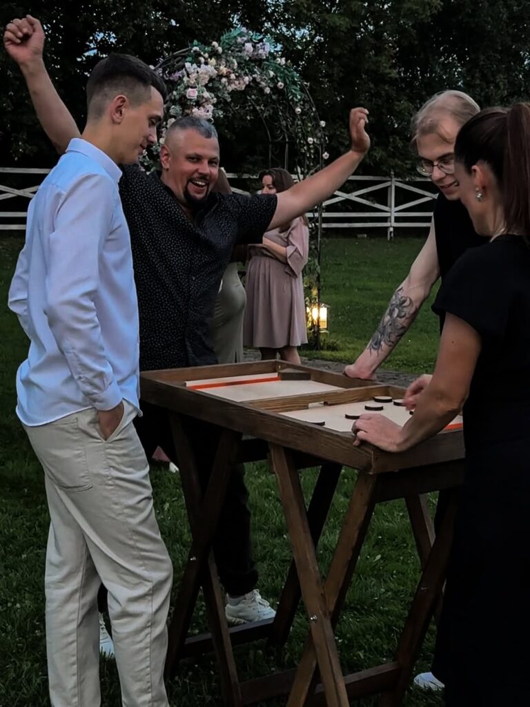 Выездные деревянные игры от Jumanji.by — это формат развлечений, который мгновенно вовлекает гостей и превращает любое событие в активный, динамичный и запоминающийся праздник. Игры становятся центром притяжения: гости знакомятся, соревнуются, смеются и проводят время вместе без телефонов и скучных пауз.